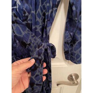 DUNIA Y2K Blue Animal Print Wrap Dress 3/4 Sleeve - Rayon & Lycra Blend - Women'