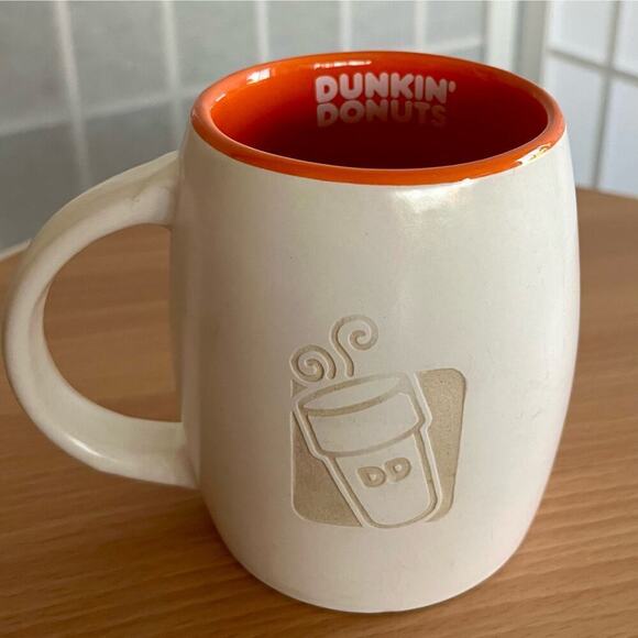 DUNKIN DONUTS Engraved Coffee Mug White Orange 14 OZ