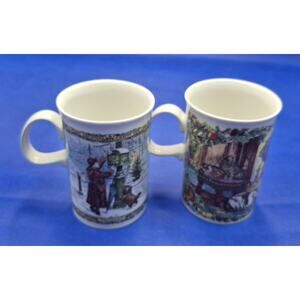 DUNOON Christmas Mugs Santa's Arrival & Christmas Past 10oz Set of Two Scotland