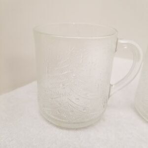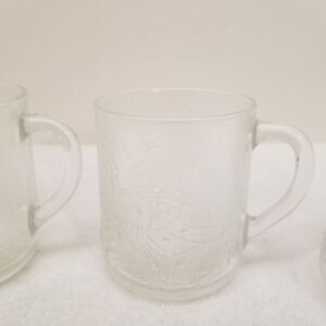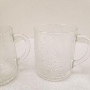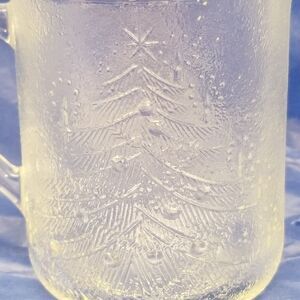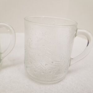 A set of 4 Duralex clear glass cups, made in France, with a capacity of 11.5 ounces each. The cups feature etched Christmas tree designs, perfect for the holiday season. Suitable for use by teens, adults, and kids, this mug set is ideal for hot beverages. 5.714