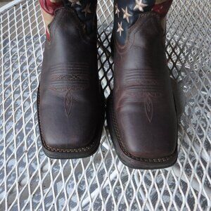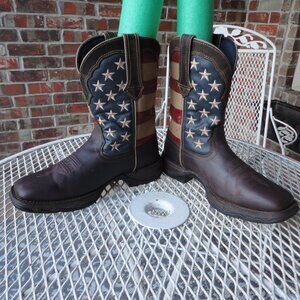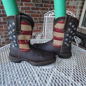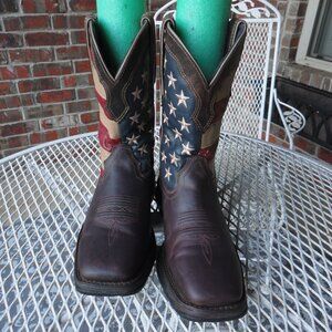 DURANGO Women's American Flag Square Toe Boots Size 8.5 M Brown Patriotic