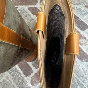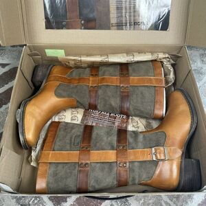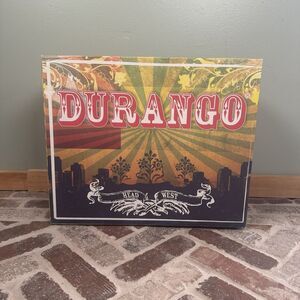 DURANGO World Traveler DCRD036 Women's Wellington Boot Size 6M Pull On Canvas & Leather Boots. These beautiful boots are made to look like old vintage luggage. Very unique and pretty boots in great condition.