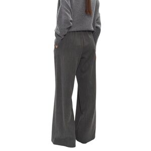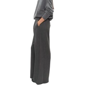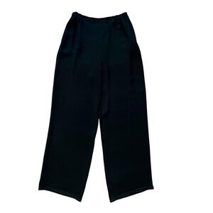 DUSAN 100% silk pull on pants flat front elastic back waistband wide leg dark gray in color pre owned like new condition does not appear to be worn size large DUSAN is a luxury brand see photos for measurements