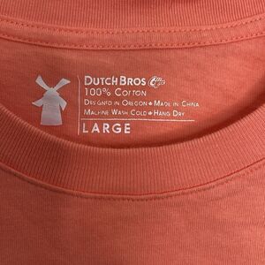 DUTCH BROS Women’s 1992 Long Sleeves Light Orange T Shirt Size L in excellent used condition. Hardly noticeable light stain on the front ( last photo) . Price offered reflects this issue. Pit to pit measures around 20”.