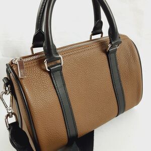 DUYP Melodie Cecile Pebbled Leather Shoulder Bag Brown & Black Satchel W/ Insert