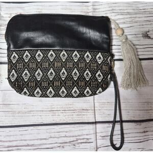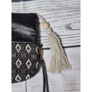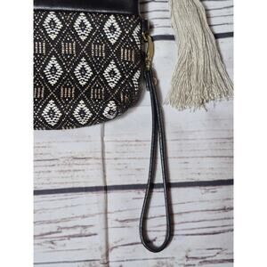 DV By Dolce Vita Boho Tribal Woven Tassle Clutch Wristlet Zippered Top Fold Over