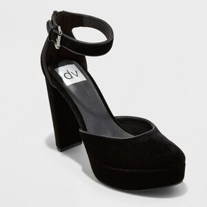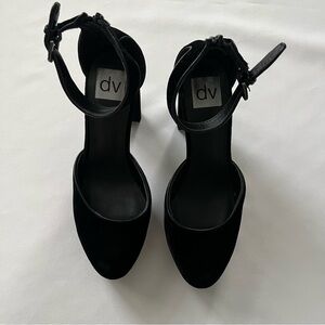 DV By Dolce Vita Hedda Raven Black Velvet Ankle Strap Platform Heels Size 8