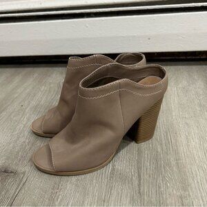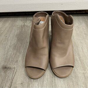 DV By Dolce Vita Peep Toe Tan Slip On Heels Ankle Boots Women’s Size 8