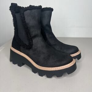 DV Dolce Vita Black Vinny Cozy Lug-Sole Platform Booties Size 6