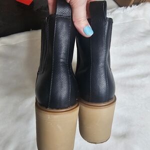 DV Dolce Vita Jade Black Bootie Womens 9 Chunky Tan Lug Sole Rubber Heel