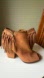 DV Dolce Vita for Target Tan Peep-Toe Fringed Ankle Booties. This style features a peep-toe design, fringe accents, and a block heel, embodying a casual, bohemian-inspired look.