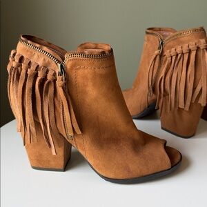 DV Dolce Vita Tan Peep-Toe Fringed Ankle Booties Faux Suede concert Western