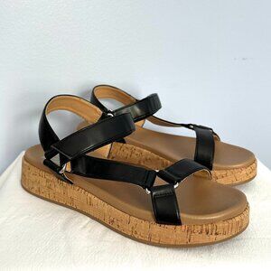 DV Dolce Vita Women’s Saedey Velcro Cork Platform Sandals 8 Black Adjustable