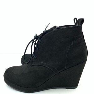 Dolce vita DV womans booties size 5.5 Terri black faux suede vegan lace up size zip wedge boots