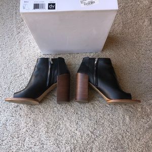 DV by DOLCE VITA “MERCY” BLACK LEATHER OPEN TOE HIGH HEEL BOOTIES W/INSIDW ZIPPER FOR EASE & EXPOSED DECORATIVE ZIPPERS ON OUTER SIDES SZ-10 IN BOX 🖤VERY SEXY & SUPER CUTE!!! EXCELLENT CONDITION EXCEPT TINY BIT OF MATERIAL PEELED AWAY AS PICTURED (I colored it with marker) DOES NOT SHOW AT ALL WHEN WORN!! ❤️🥰😍