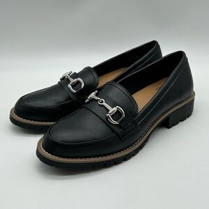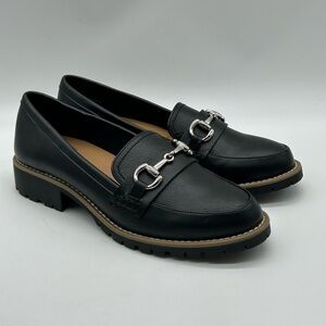 DV by Dolce Vita Cedar, black lug sole loafers, women’s size 8 loafers, horsebit detail shoes, chunky sole loafers, silver hardware loafers, preppy black loafers, DV Dolce Vita loafers NIB, work shoes for women, casual loafers