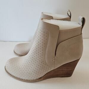 DV by Dolce Vita Gerdy Bootie Beige Ankle Wedge Heel Women's 6 Boho Chic Casual