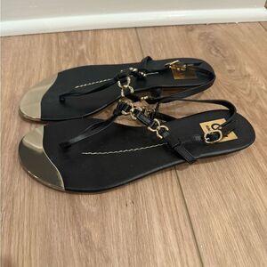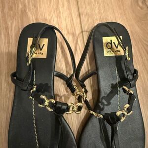 DV by Dolce Vita Black and Gold Thong Sandals