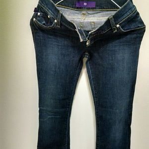 Bootcut, dark rinse DVB jeans, worn once, very flattering, sadly no longer fit! Size 26, measures 14" across at waist but stretch to fabric, 31" inseam