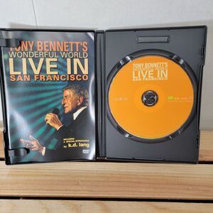 DVD Tony Bennett's Wonderful World: Live In San Francisco. The plastic on the top Front of the case has been torn. (See LAST picture.) DVD has very minimal light scratches. (See THIRD picture.) Plays just fine. Comes from a smoke free home.