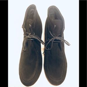 Faux suede black lace up ankle boots. They have a covered 3.5”wedge heel.