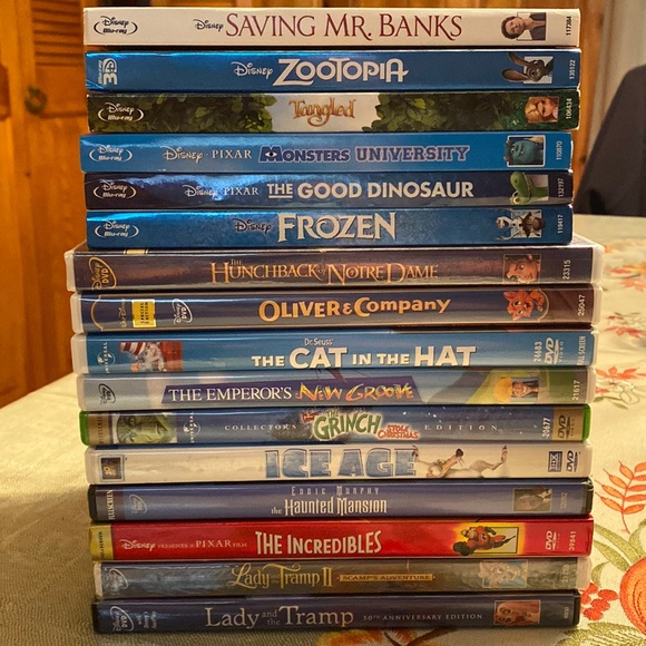 The Humchback of Notre Dame-Oliver & Company-The Cat in the Hat- The Emperor’s New Groove- The Grinch - Ice Age - The Haunted Mansion - The Incredibles- Lady and the Tramp & Lady and the Tramp II