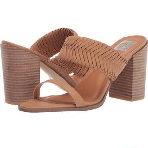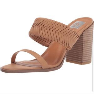DV Dolce Vita Brown BAMBI Faux Leather Woven Whipstitch Block Heel Sandals