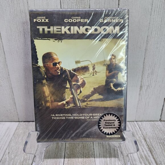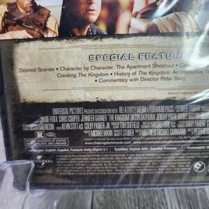 Experience intense action with "The Kingdom DVD 2007 Widescreen - Jamie Foxx Chris Cooper". This multicolor, plastic DVD brings Hollywood at your doorstep.