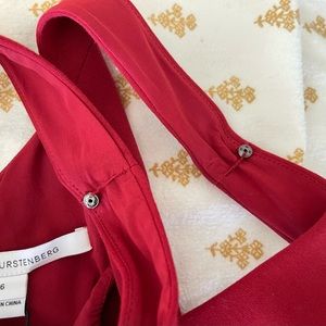 I love this DVF so much, color is very pretty. Bought it in Chicago when I was on a business trip there, but never got a chance to wear it. The tag is still on, brand new. Wear it together with a high heel, you will be the shining one at the party. Wear it with a jacket or suit, this could be an office outfit. The material is very comfortable. I'm simplying my life by decluttering now. So want to sell it to someone loves it.