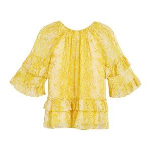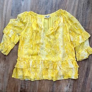 DVF Annabel Python Gold Silk Ruffle Blouse