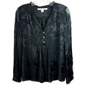 DVF Annalise Black Floral Burnout Blouse Size 6