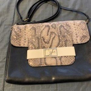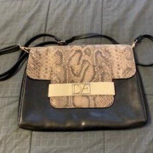 DVF Black Leather and Snakeskin Mimosa Clutch