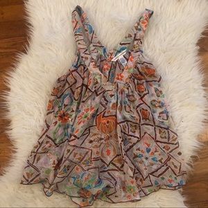 Creme Diane von Furstenberg Clementine sleeveless silk top with V-neck, gathered at neckline, bead embellishments and abstract print throughout.