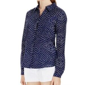 DVF Cotton Silk Polka Geometric Dot Button Up 4