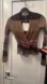 Waist-length style V neck Long sleeves Tie at waist Shell: 52% viscose/27% rayon/19% polymer/2% metallic Dry clean