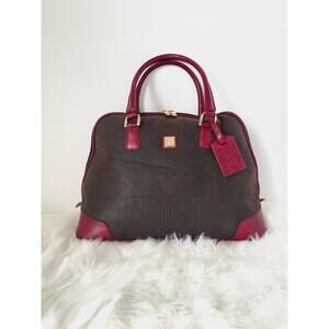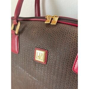 DVF DIANE von FURSTENBERG Brown Suede and Red Vegan Leather Overnight Travel Bag