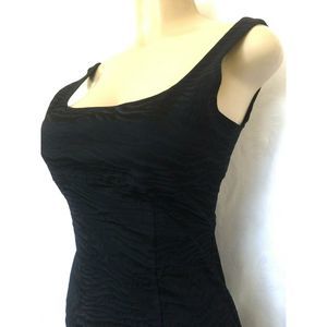 This Diane von Furstenberg Bridget dress stands out with its subtle black and navy zebra print pattern. The scoop neckline and low back expertly accentuate the female figure.