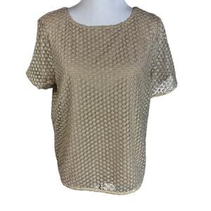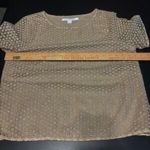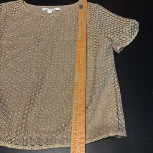DVF Diane Von Furstenberg Brylee Top Blouse Textured Gold Size L Large