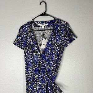 DVF Diane Von Furstenberg New Julian Two Short Sleeve Wrap Dress Snake Scales Chrome Size 2 NWTNew With Tags