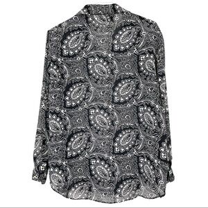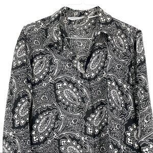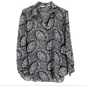 DVF Diane Von Furstenberg Paisley Print Silky Button Down Blouse Top
