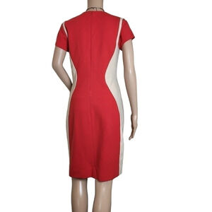 DVF Pele Blood Orange Beige Bodycon Illusion Color-Block Dress
