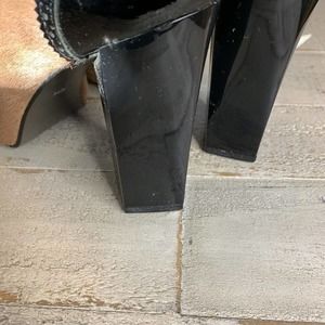 DVF Diane Von Furstenberg Pony Hair Peep Toe Heels Size 7.5 Pumps Black Patent