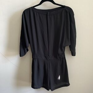 DVF Diane Von Furstenberg Romper Black Open Back Pockets Dolman Sleeves XS