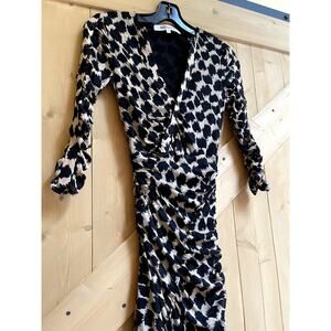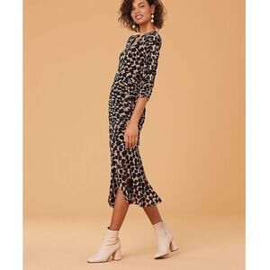 DVF Ruched Mesh Briella Midi Dress in Leopard Print Size XS