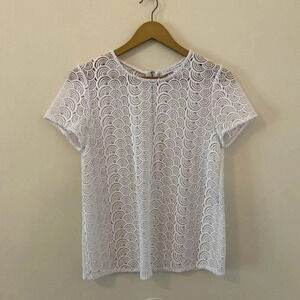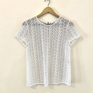 Diane Von Furstenberg "Melissa" top in scalloped Guipure lace. Short sleeves. Gold back zipper. Super Cute and Classic. Excellent Condition.