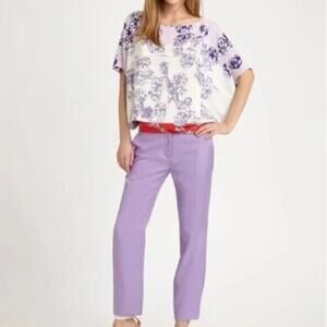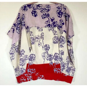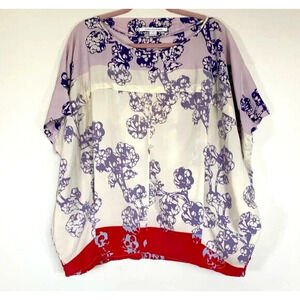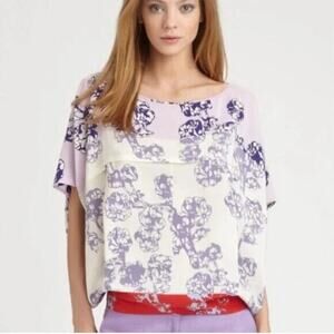 DVF Diane Von Furstenberg Silk Landy Blouson Blouse Top Floral Purple S