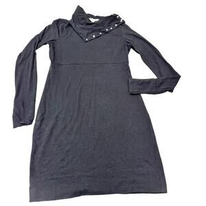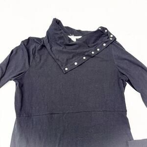 DVF Diane Von Furstenberg Turtle Snap Turtleneck Cotton Blend Dress Black Size L