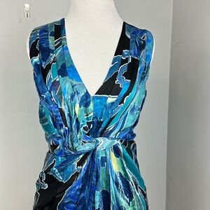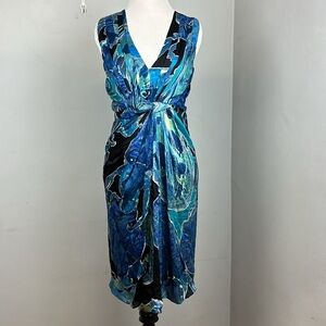 DVF Diane Von Furstenberg Weslie Silk Dress Draped Sleeveless Blue Sz 2