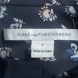 DVF Diane Von Furstenberg Womens Silk Blend Floral Blazer Size 2 Blue Lined Casual
