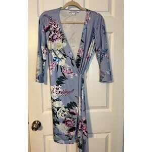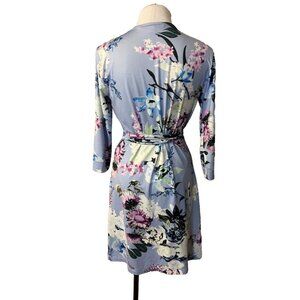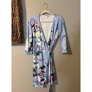 DVF Diane Von Furstenberg Wrap Dress 6 Small Blue Floral SILK Career Church